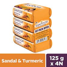 Santoor Sandal & Turmeric Bathing Soap, 125 g (Pack of 4)